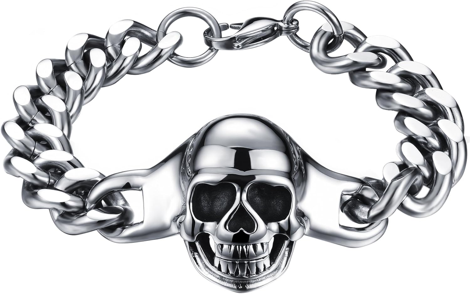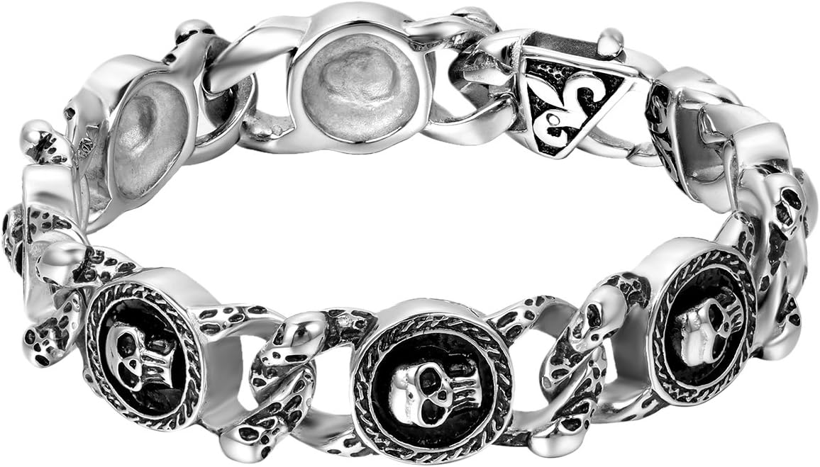 OIDEA Mens Bracelet - Gothic Skull Bracelet for Men, Vintage Punk Skull Cuff Link Bracelet Jewelry Gift